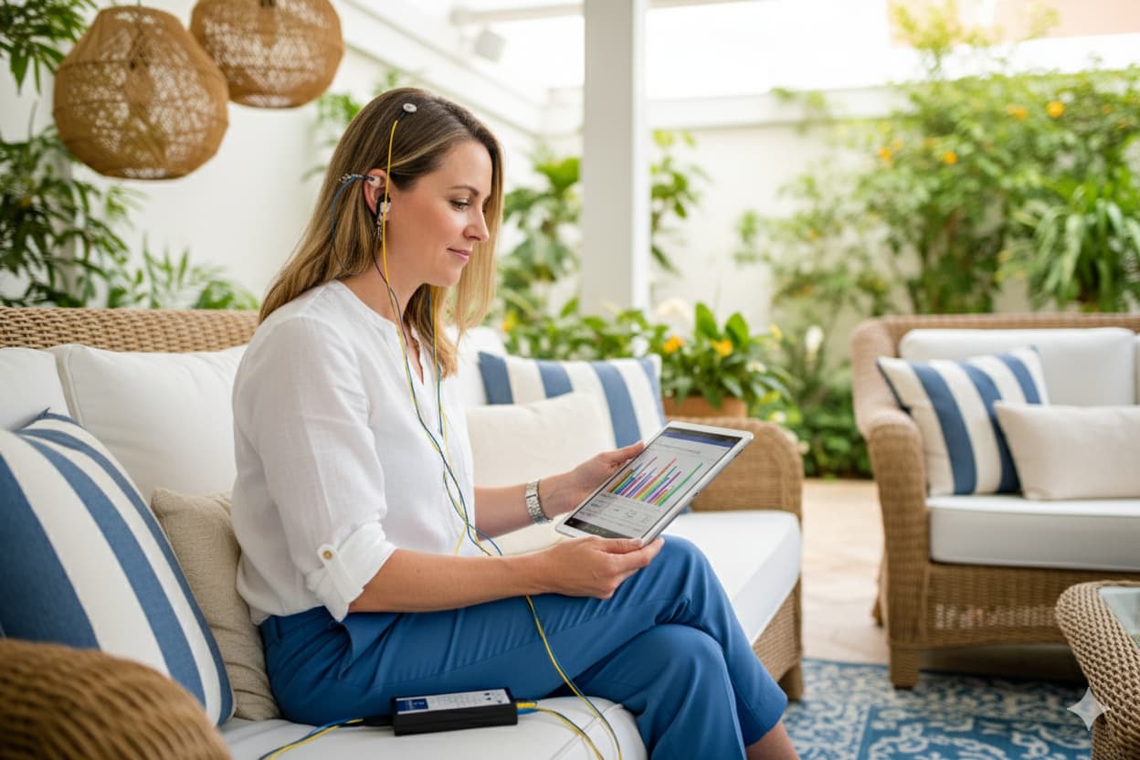 Durante la sesión, sensores colocados en el cuero cabelludo registran la actividad eléctrica cerebral. Cuando se detectan ciertas variaciones, el sistema introduce breves pausas en la música que escuchas, conocidas como retroalimentación sonora. Estas señales permiten al cerebro adaptarse de forma automática, sin esfuerzo consciente, apoyando la autorregulación y fomentando la neuroplasticidad, es decir, la capacidad del cerebro para reorganizarse y adaptarse.